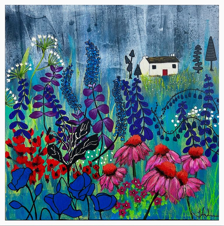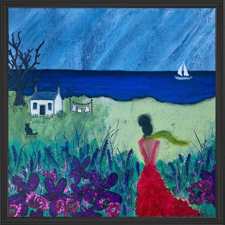 Mixed media acrylics and inks on deep edge canvas in a matt black wooden floating frame